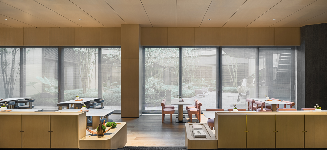 崇明岛居风景自然清丽,在地性的自然元素在此处被提炼为空间材质的运用。