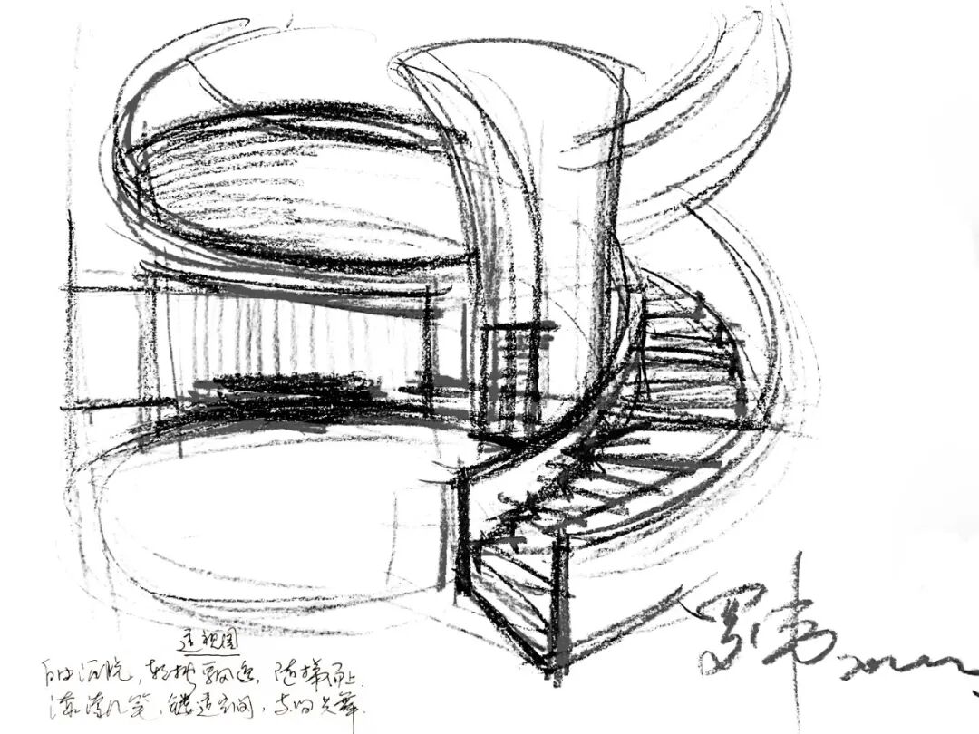 上饶,“青山自负无尘色,尽日殷勤照碧溪。”自然地貌的原始神秘流露出空间的自然性,抽象的艺术手法融入精神架构,线条变化成跳动的音频,再造人与空间的梦境时空。