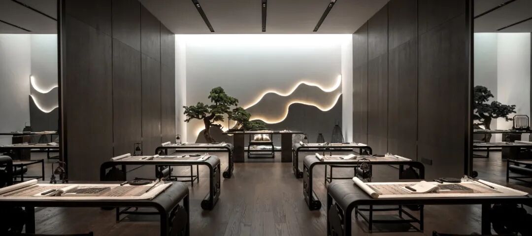 “邕州八景”之一:望仙怀古,曾为南宁市增添了许多书香古韵,而本案的负一层也精心设置了国学堂,我们希望可以让正统的国学,从象牙塔里回归社会,融入孩子们的童年。在家具的选型上,设计师精心挑选一些圆润的,无尖角的家俬,但却保持着古典的风骨和气韵。学位座椅也软硬适中,让孩童始终能保持一种舒适挺拔的姿势坐立,更加专注的沉浸在课堂之中,习得国学之精髓。