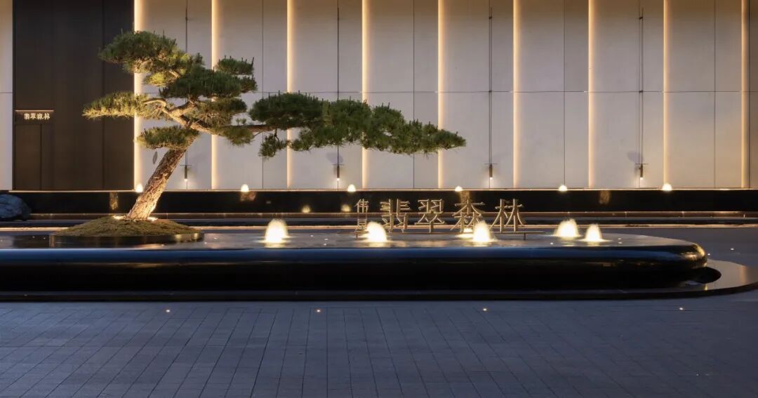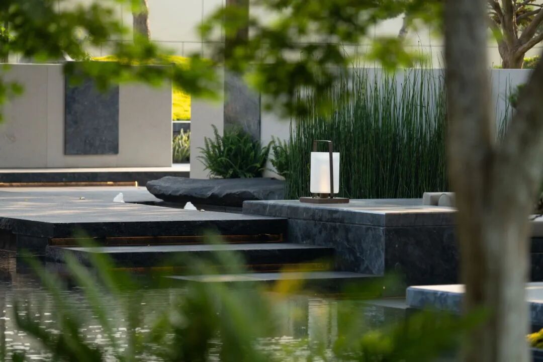 『 1300㎡游憩水院 』流动空间在古典空间的形式基础上追求层次上的升级,通过多重矩阵叠合强调几何图形的美感,规则的线条和结构形成视觉上的秩序感和美感,创造整体庭院的现代感和艺术感;