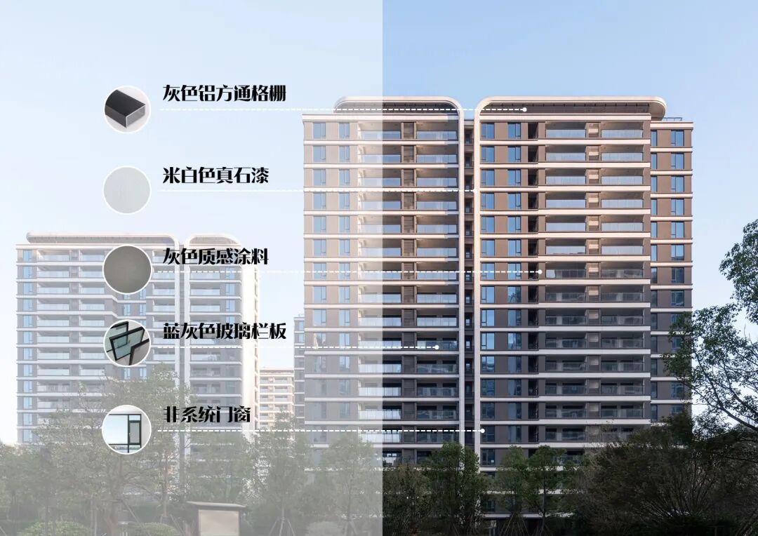 在该项目设计期间,长乐地区楼盘的立面形式仍以新中式、新亚洲风格为主。为了突破同质化,我们希望通过公建化立面与曲线框架的立面语言,来打造长乐住宅新标杆,提升区域立面品质。