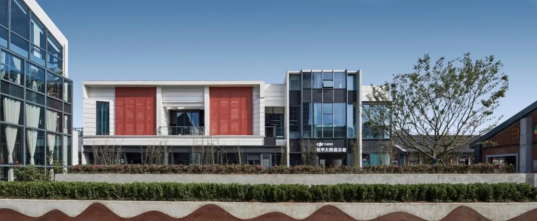 入口处一栋保留建筑,将现代元素点缀在传统的坡顶红墙的老建筑中,仿佛是传统与现代的对话。
